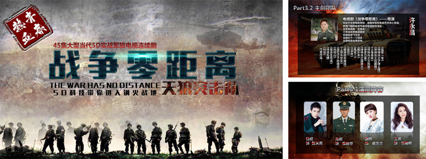 公司與西部戰區合作打造電視劇《決勝零距離》,是第一部沙漠題材的現代軍事戰爭大劇,生動反映我軍軍事改革歷程的鴻篇巨著,對我軍軍事改革的持續深入推進有著重大的宣傳鼓動價值。